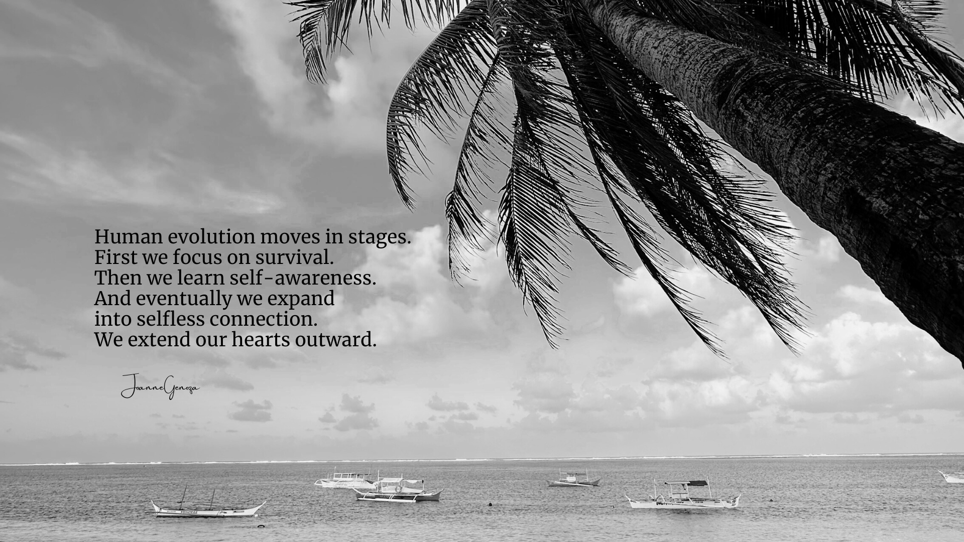 Human evolution moves in stages. First we focus on survival. Then we learn self-awareness. And eventually we expand into selfless connection. We extend our hearts outward.